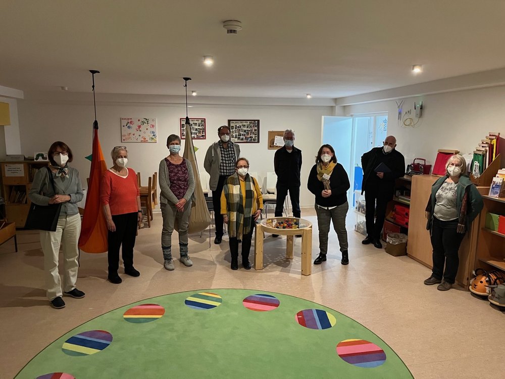 Anlässlich der regelmäßigen Ortsverbandssitzungen trafen sich die GRÜNEN im neuen Mehrgenerationenhaus (MGH) in Winkel und wurden dort durch die Leiterin Frau Christiane Kompch-Maneshkarimi empfangen. Diese führte die grünen Ortsverbandsmitglieder durch die neuen Räumlichkeiten, die zum 1. Juni 2021 im Bachweg 37 a in Winkel öffneten. Während des einstündigen Rundgangs konnten sich die Grünen von der Vielfalt des Mehrgenerationenhauses und der Räumlichkeiten überzeugen. Frau Kompch-Maneshkarimi erläuterte ausführlich die vielfältigen Programme, die zugeschnitten für alle Altersgruppen von Krabbelkindern bis Senioren regelmäßig stattfinden.