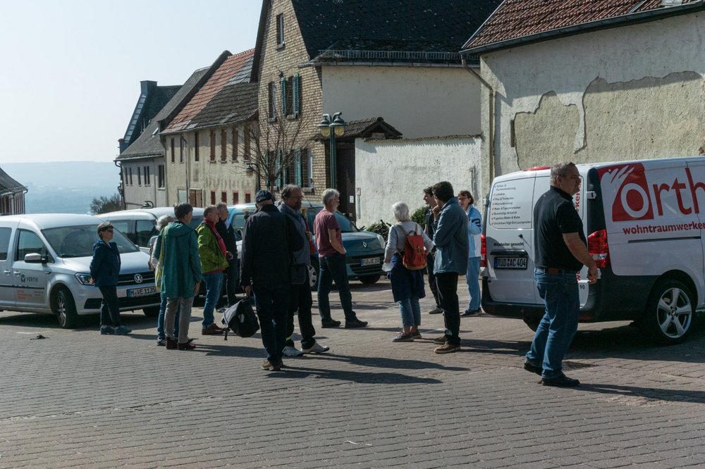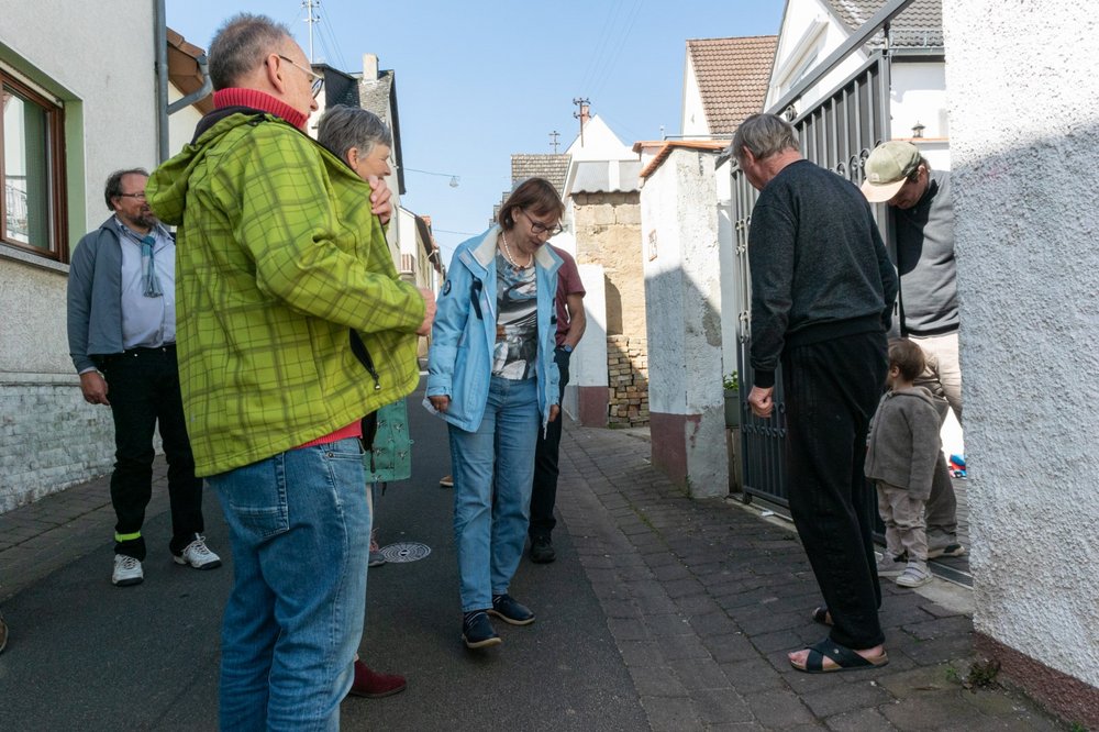Viel Gesprächsstoff gab es direkt am Startpunkt, dem Hallgartener Marktplatz. Die Abrissstelle der ehemaligen Gaststätte Taunus, wo Hallgartener Bürger über Jahrzehnte ihre Geburtstage, Hochzeiten und Familienfeiern abhielten. Das Denkmalamt hielt leider nur den Teil des Gewölbekellers für schützenswert, der Rest des Gebäudes wurde abgerissen. Die riesige Lücke am Marktplatz soll neu bebaut werden und das auf dem denkmalgeschützen Kellerteil. Dieser Kellerteil nutzt niemandem mehr und wahrscheinlich wäre es besser gewesen, dafür mehr gescheite Tiefgaragenplätze auszuweisen, damit die Autos dort auch geparkt werden. Die Grüne Fraktion wird sich in den städtischen Gremien mit den Bauplänen auseinandersetzen, sobald diese dort auftauchen.