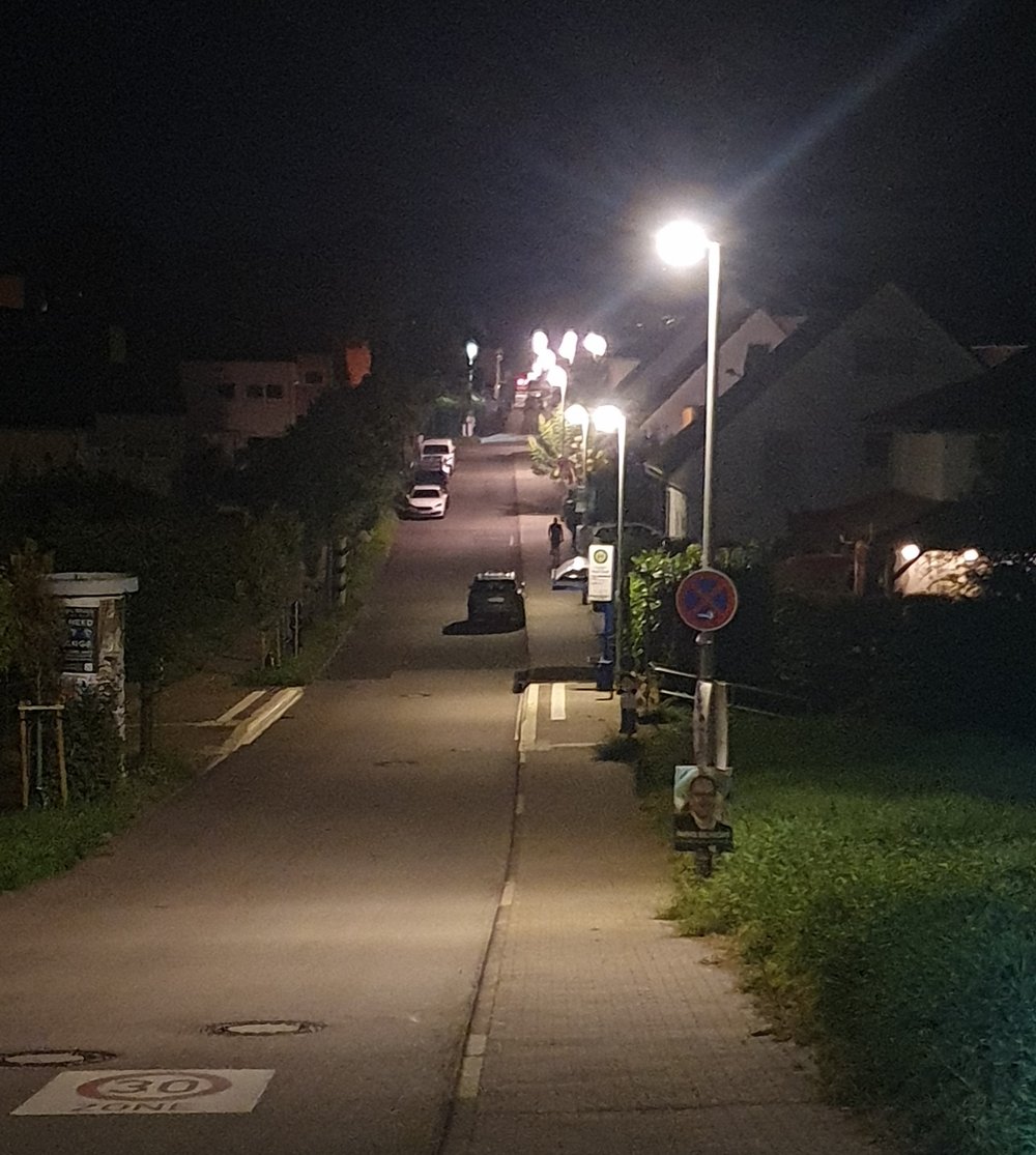 Übrigens gibt es auch für die Kommunen keine grundsätzliche Beleuchtungspflicht außer für Gefahrenstellen und in der Praxis beleuchten wir statt der Gehwege die Fahrbahnen, obwohl die Fahrzeuge eine eigene Beleuchtung haben. Und das noch mit bis zu 30 Lux im Bodenbereich anstatt der ausreichenden 2 bis 5 Lux. Werden diese hellen LEDs um 2/3 in der Lichtstärke reduziert, kann das menschliche Auge den Unterschied nicht mal wahrnehmen! Und mehr Sicherheit durch Licht? Es gibt keine wissenschaftlichen Belege dazu – außer die häufigen Kollisionen mit Lichtmasten.