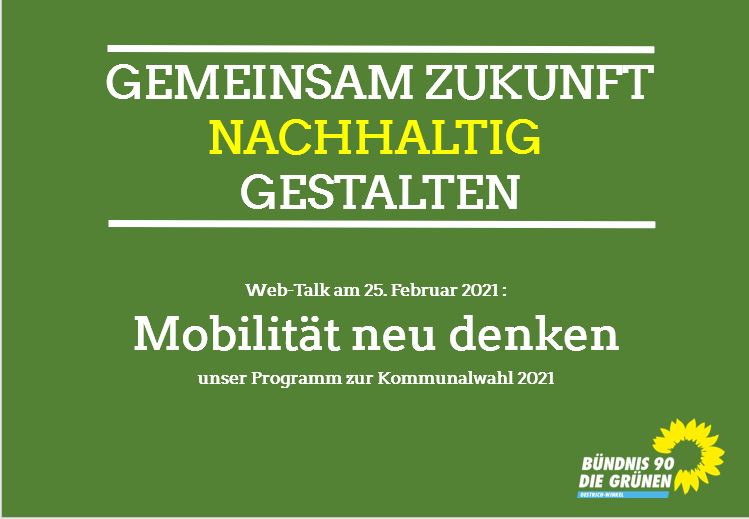 Die GRÜNEN laden alle interessierten Bürgerinnen und Bürger zum Gespräch über diese zentrale Zukunftsaufgabe ein. Es ist ganz einfach: Wählen Sie sich unter https://meet.jit.si/GRUENE-OeWi-Web-Talks ein und diskutieren sie mit! Ihre Meinung interessiert uns!