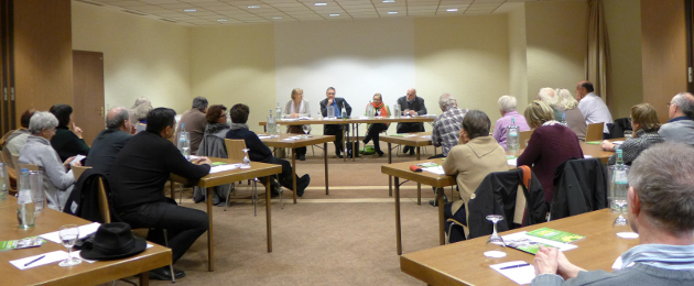 Der Kreisverband und der Ortsverband von Bündnis90/Die Grünen hatten am 19.1.16 zu einem Diskussionsforum in das Hotel Advena eingeladen. Den zahlreich erschienen Bürgerinnen und Bürgern präsentierten Jo Dreiseitel (Staatssekretär im Sozialministerium), Dorit Nabrotzky (ehrenamtliche Dezernentin für Integration und Wir-Koordination im Rheingau- Taunus-Kreis), Kurt Bussweiler (Ortsverbandvorsitzender und ehrenamtlicher Flüchtlingshelfer in Oestrich-Winkel) unter der Moderation von Ingrid Reichbauer (Spitzenkandidatin für die Kreistagswahl) den aktuellen Stand und die getroffenen und geplanten Maßnahmen zur Integration von Flüchtlingen.